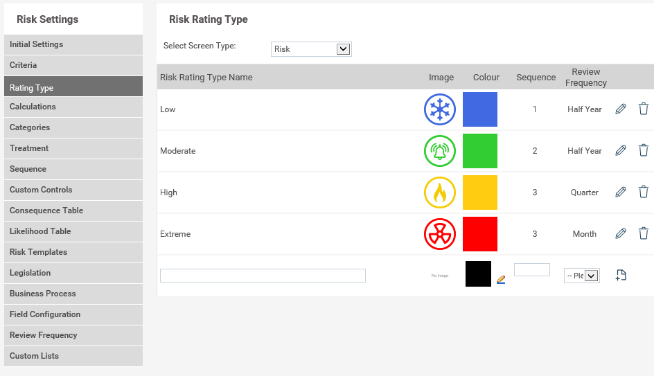 STEP 2: To define a rating, enter a name and associate an image with it which will be used throughout the system.